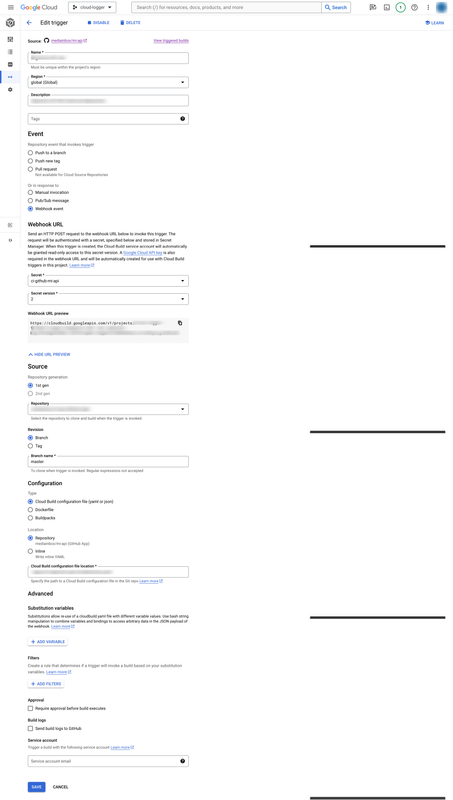 I have a Cloud Build trigger that fetches some source code from Github and creates a Docker image. I am running this trigger manually. Now I’m trying to invoke it using the Webook provided URL, but every time the build is triggered it fails with the error “Your build failed to run: File cloudbuild.yaml not found”. It doesn’t seem to checkout the source.